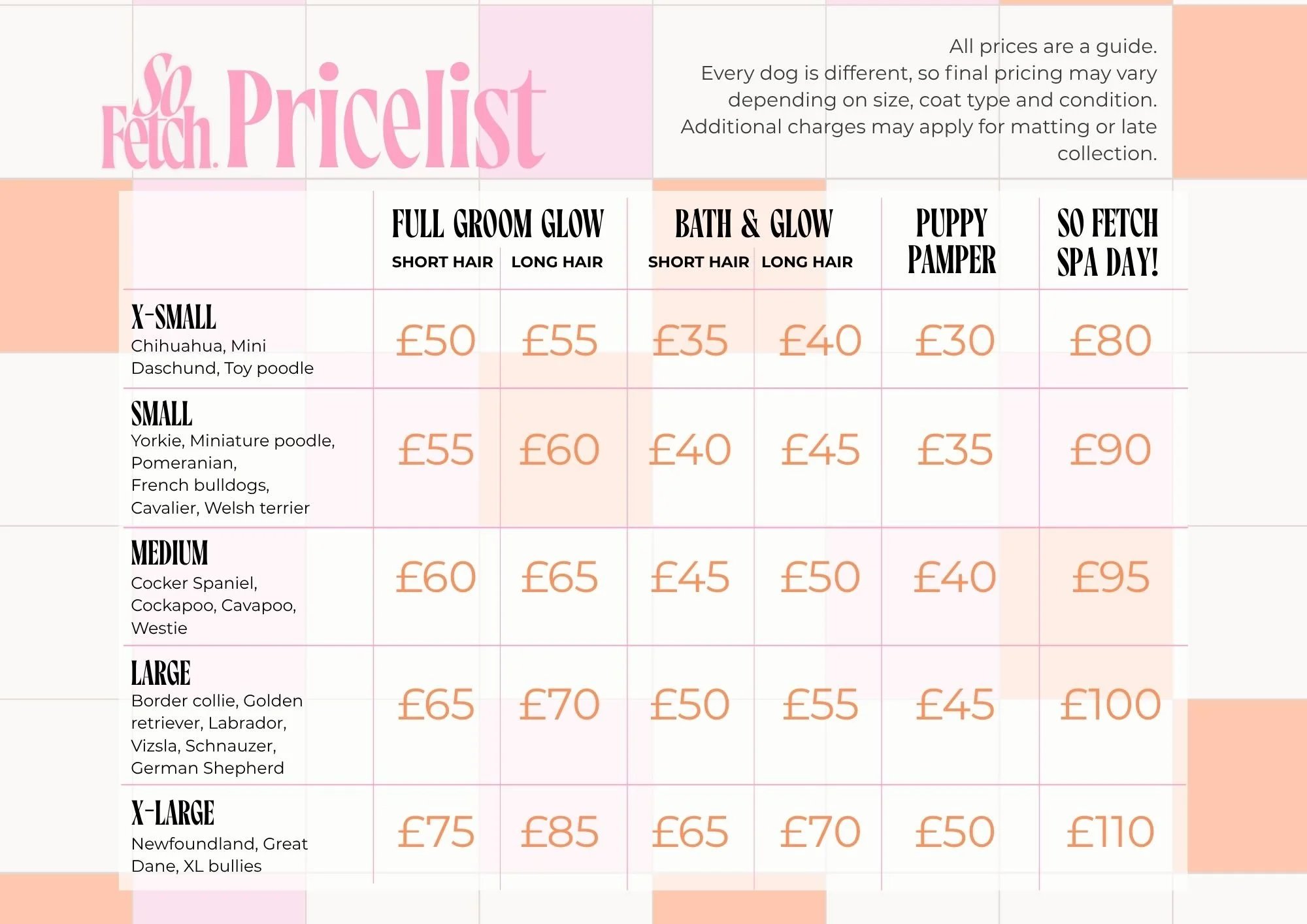 Whether your dog needs a full transformation, a tidy up, or a little in-between pamper, we got you.